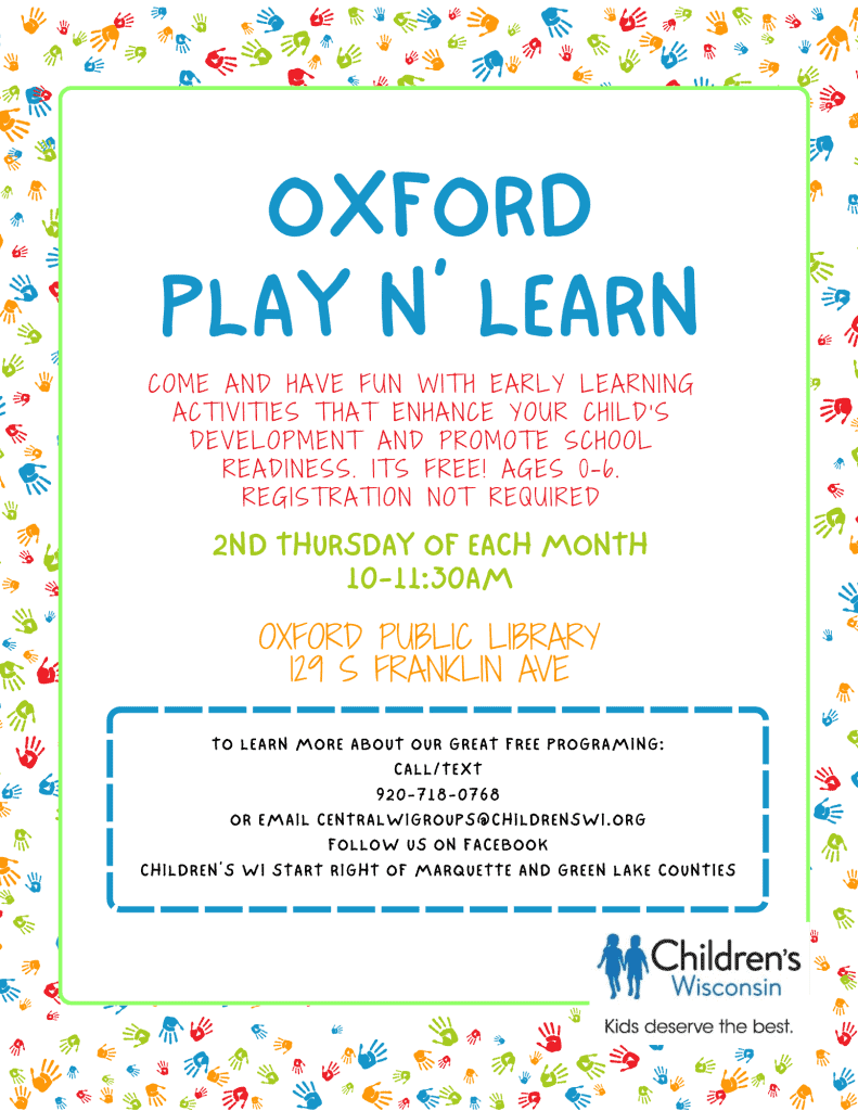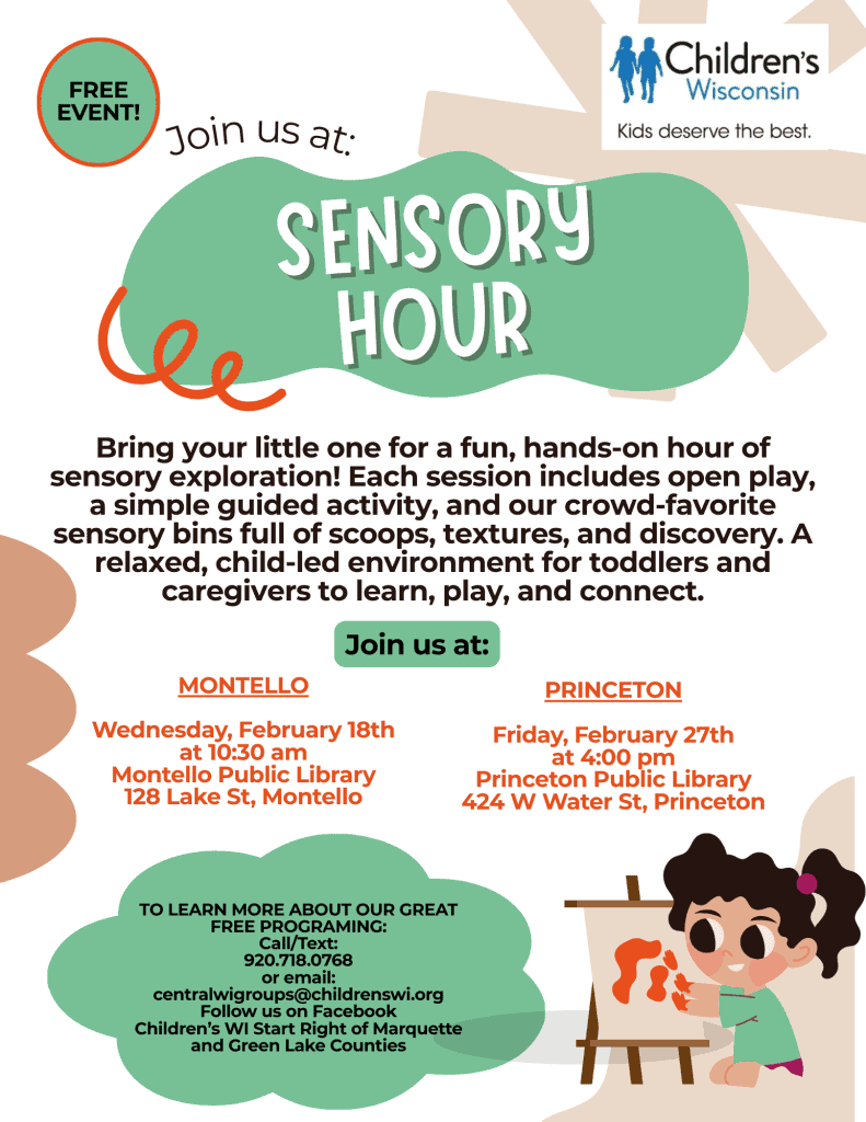 Join us for a free, fun-filled early learning program designed for children ages 0–6! Each session includes hands‑on activities that support your child’s development and build school‑readiness skills. No registration required—just come and play!